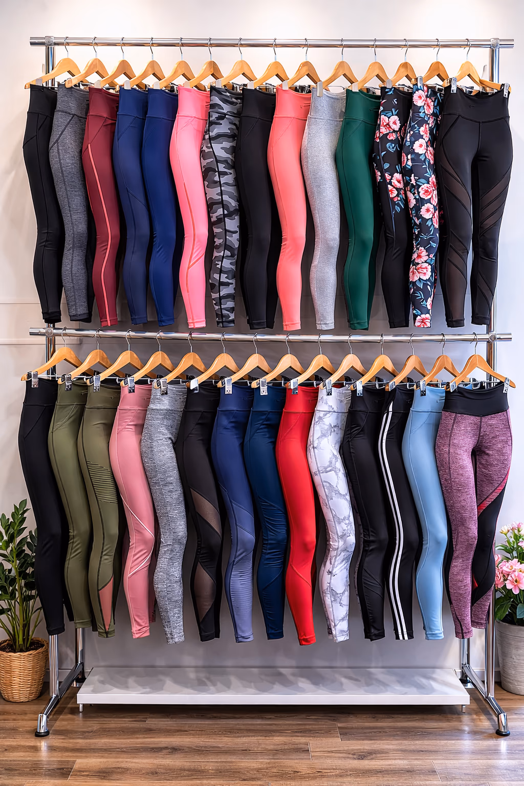 Különböző fazonú és színű pamut leggingsek.